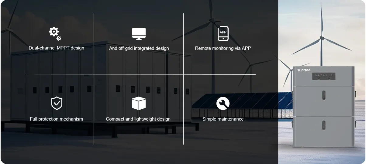 • Supports two independent photovoltaic inputs, with a maximum input power of up to 2400W and an MPPT efficiency as high as 99%, enhancing power generation efficiency.