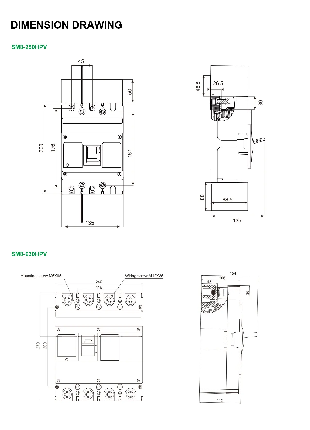 Product Model SM8-250HPV /3P 1500V SM8-630HPV /4P 1500V