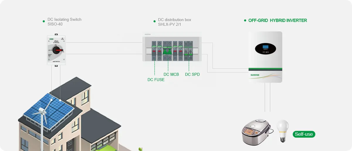 • Se a potência fotovoltaica for insuficiente, o PV pode combinar-se com a rede e a bateria para alimentar a carga.