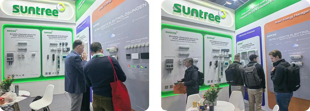 Durante a exposição, visitantes profissionais da Europa e de todo o mundo passaram pelo estande da Suntree para trocar experiências. Através de demonstrações ao vivo, os clientes puderam experimentar intuitivamente o excelente desempenho dos disjuntores inteligentes da Suntree em proteção contra curto-circuito, monitoramento de fuga de corrente e acionamento remoto.