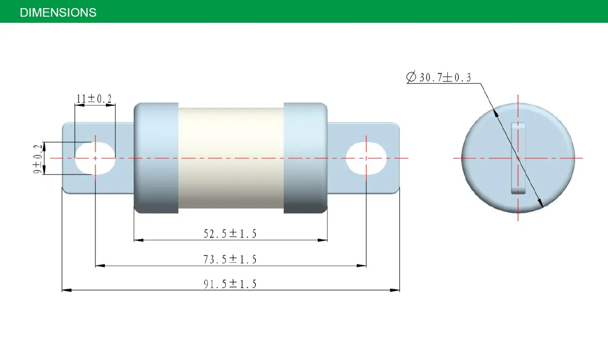 • Descrição do material: Cerâmica de alta resistência de 95% de alumina e elemento de fusível de material importado.