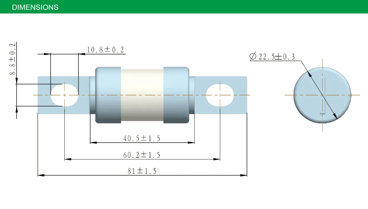 • Descrição do material: Cerâmica de alta resistência de 95% de alumina e elemento de fusível de material importado.