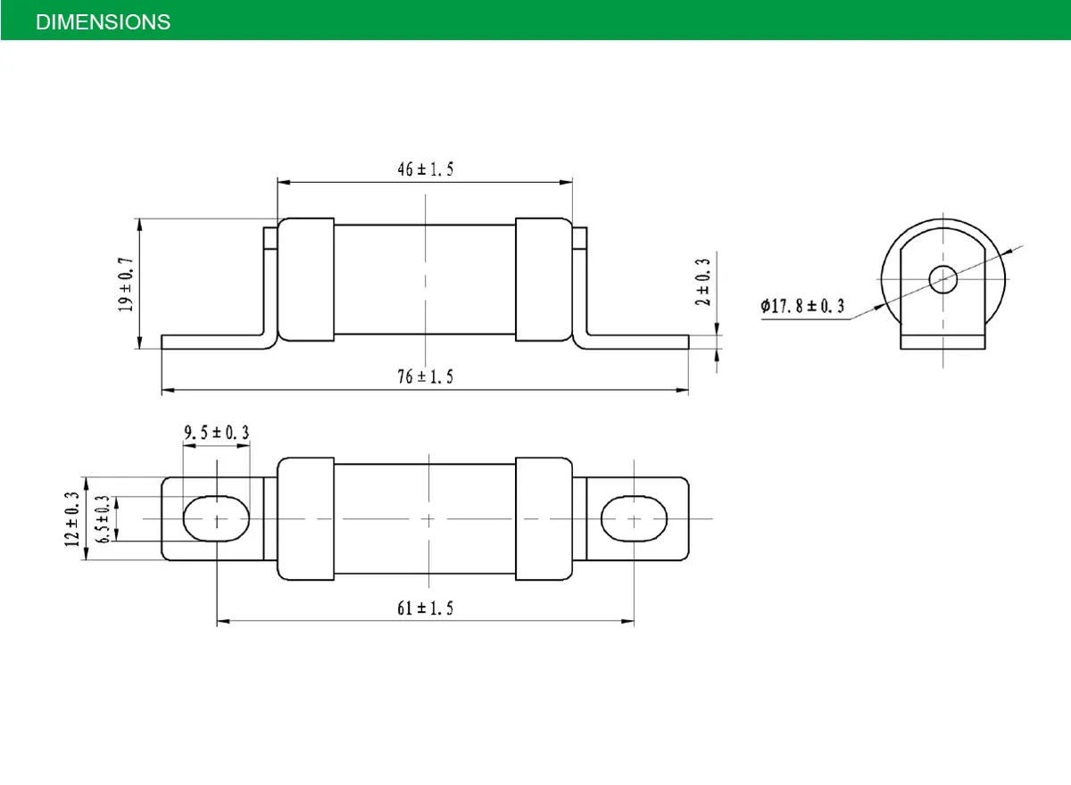 • Descrição do material: Cerâmica de alta resistência de 95% de alumina e elemento de fusível de material importado.