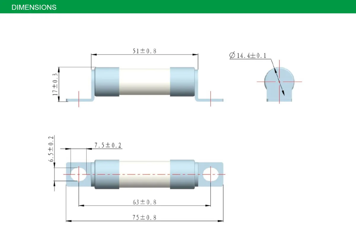 • Descrição do material: Cerâmica de alta resistência de 95% de alumina e elemento de fusível de material importado.