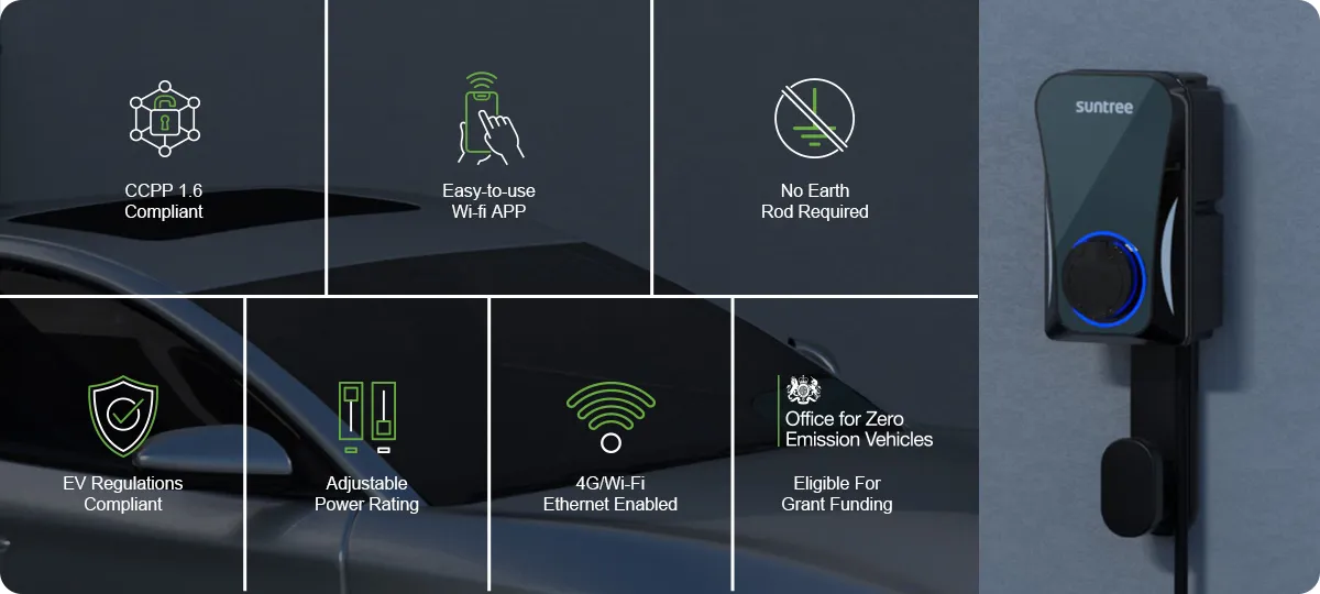 • Cumpre as regulamentações britânicas para pontos de carregamento inteligente, incluindo segurança contra violação