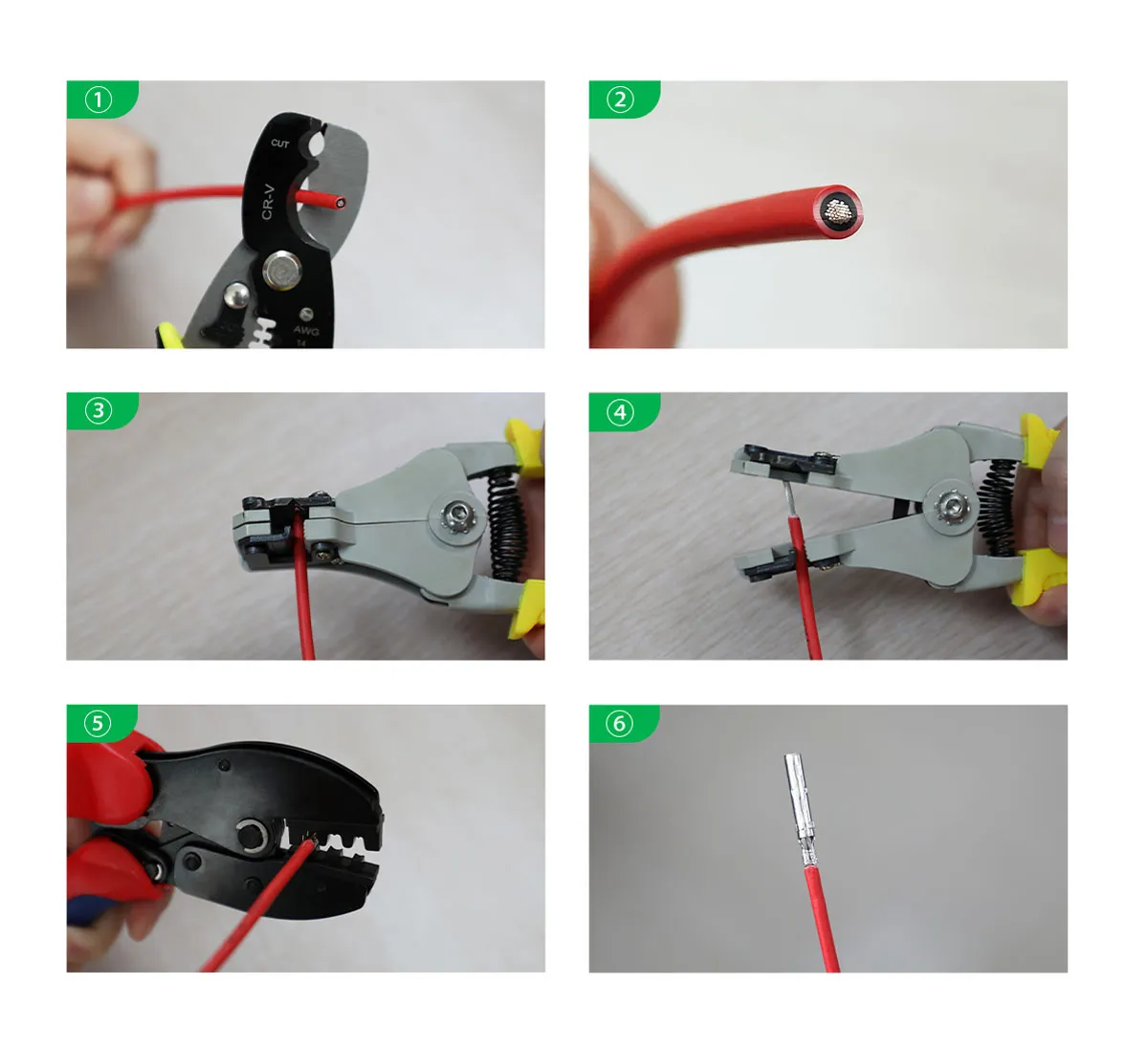 • Os componentes das ferramentas de crimpagem de catraca são fabricados em aço especial.